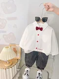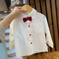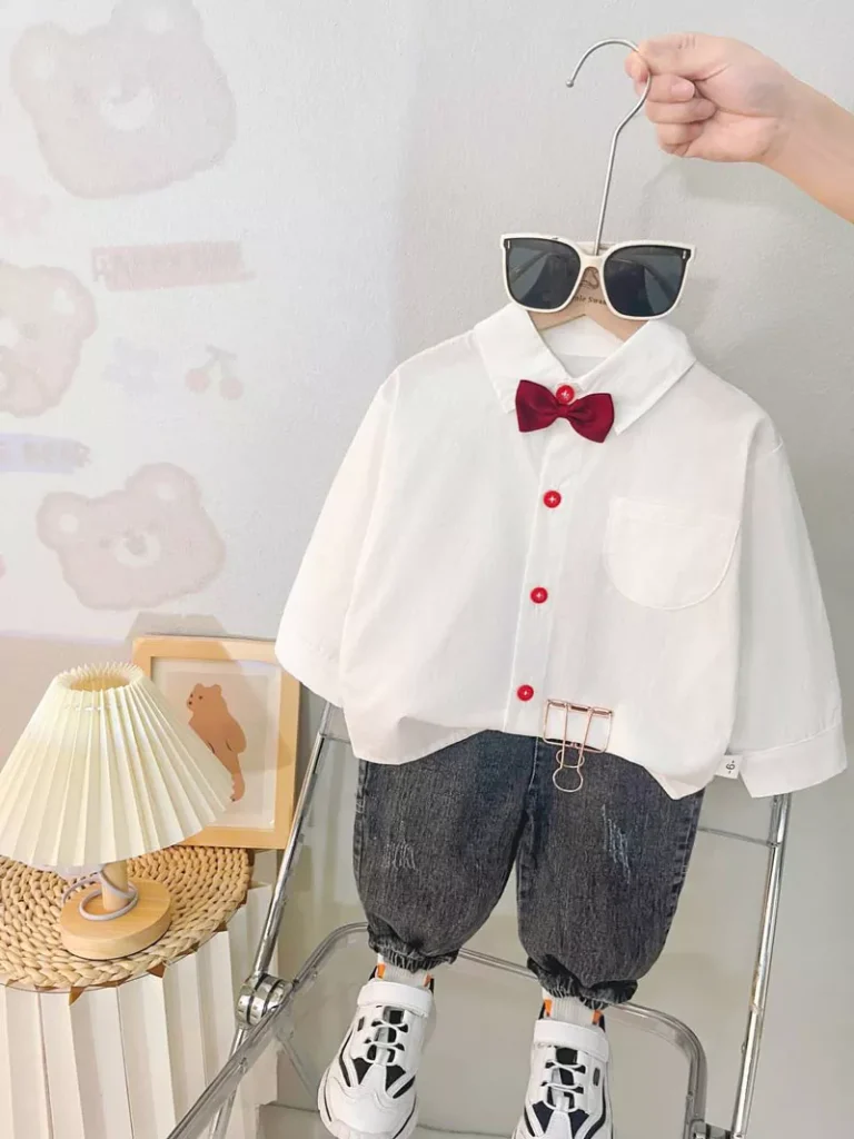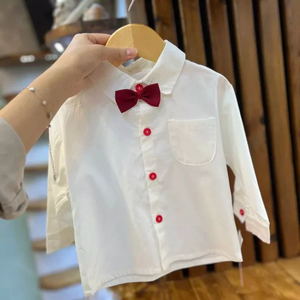 با پیراهن پسرانه سفید، شیک پوشی را به کمد فرزندتان بیاورید! انتخابی ایدهآل برای مهمانیها و روزهای خاص.جنس این پیراهن از یک پارچه نخی نازک میباشد. مناسب سنین یک تا پنج سال