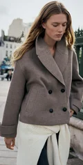 کت کوتاه از برند زارا در سه رنگ قهوه ای، کرم خاکی و طوسی از جنس فوتر، مناسب پاییز و زمستان